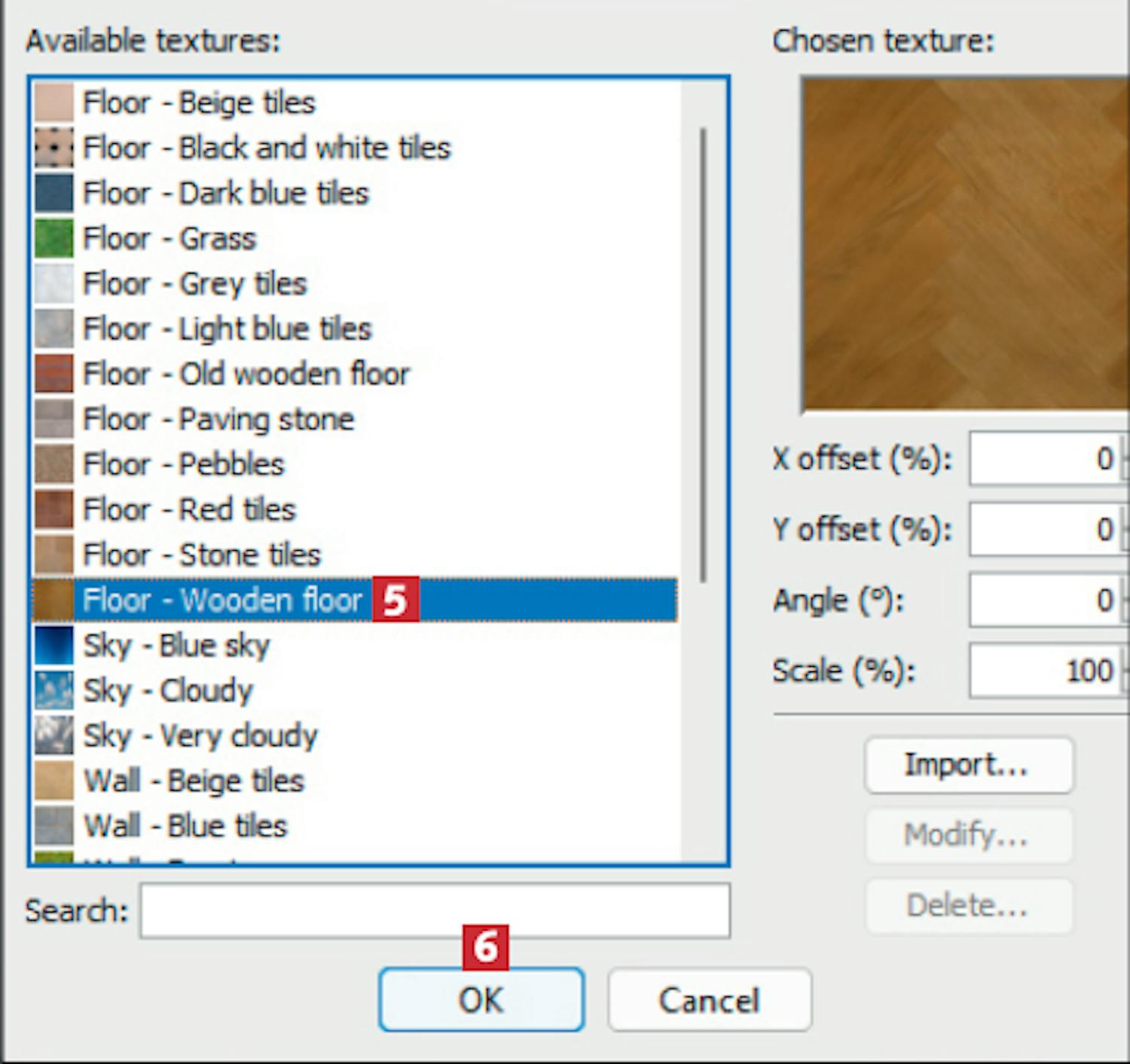 Det er tvilsomt om møblene i Sweet Home 3D har riktig størrelse eller farge. Det er imidlertid enkelt å endre begge deler.