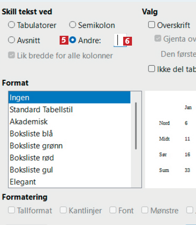 Sett markering ved Andre 5, sett markøren i feltet 6 og trykk én gang på mellomromstasten. Klikk på OK nederst.