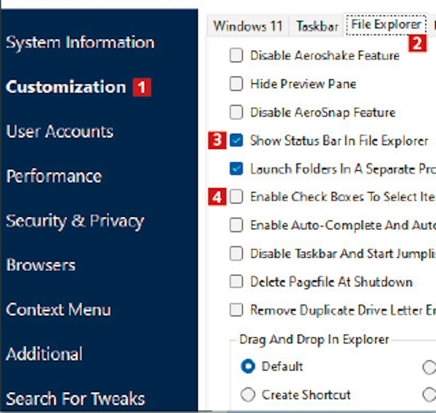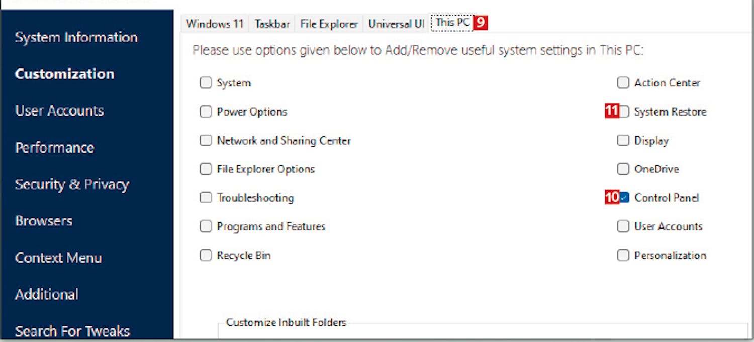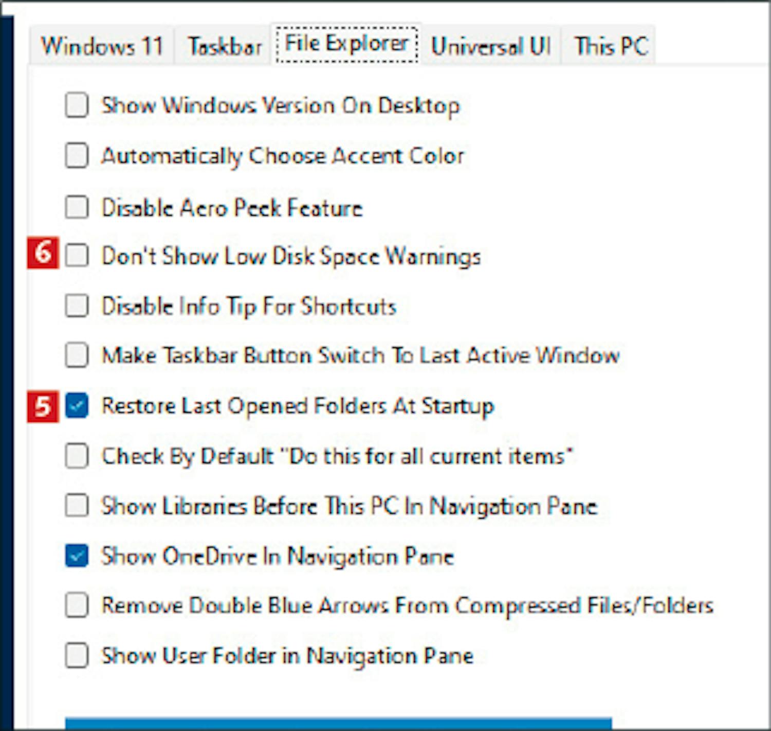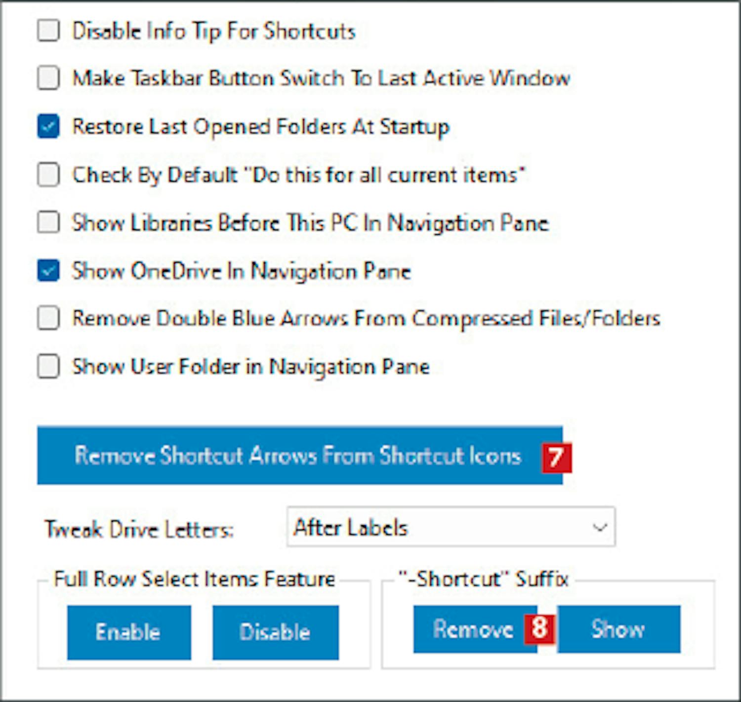 Med Ultimate Windows Tweaker kan du også enkelt bestemme nøyaktig hva som skal vises når du åpner Filutforsker, og hvilke detaljer programmet skal fortelle om filene dine. Det er også veldig smart å opprette praktiske snarveier til viktige funksjoner på pc-en, som vises når du starter Filutforsker.