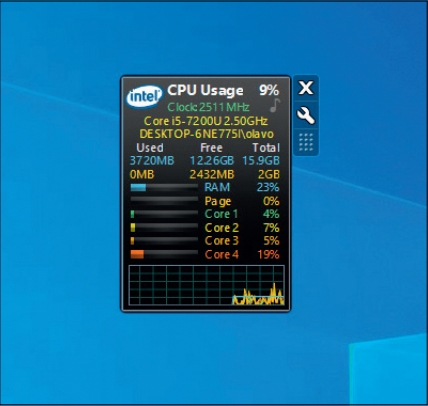 Grafer og felt i All CPU Meter viser deg hvor hardt