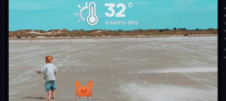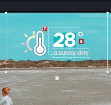 I forhåndsvisningen klikker du på teksten 7 for å redigere den. Her endrer vi temperaturen til 32° 8, som stemmer overens med temperaturen på stranden i videoen.