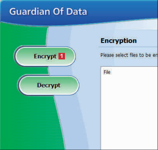 Last ned og installer programmet fra nettsiden vår. Når du starter det, klikker du på knappen Encrypt 1 for å starte krypteringsverktøyet.