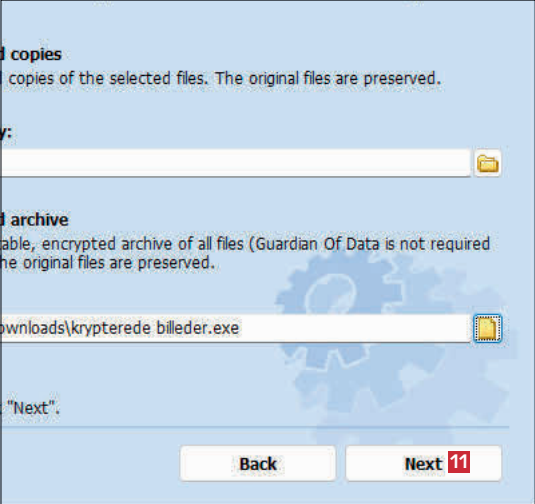 Når filene senere skal dekrypteres, slik at de ikke lenger er låst, er det bare å åpne exe-filen som du opprettet med Guardian Of Data. Deretter vises en enkel veiviser, selv om programmet ikke er installert på den aktuelle maskinen.