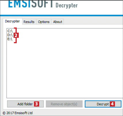 Hvis du er rammet av en av de 86 typene utpressingsvirus som du finner dekrypteringsverktøy til i Fordelssonen, kan du være så heldig at du kan låse opp filene dine igjen uten å betale en krone til de kriminelle. I noen få tilfeller må du velge både friske og infiserte filer i verktøyet for å låse dem opp, men i de fleste tilfeller er det nok å bare peke på mappen som inneholder krypterte filer.