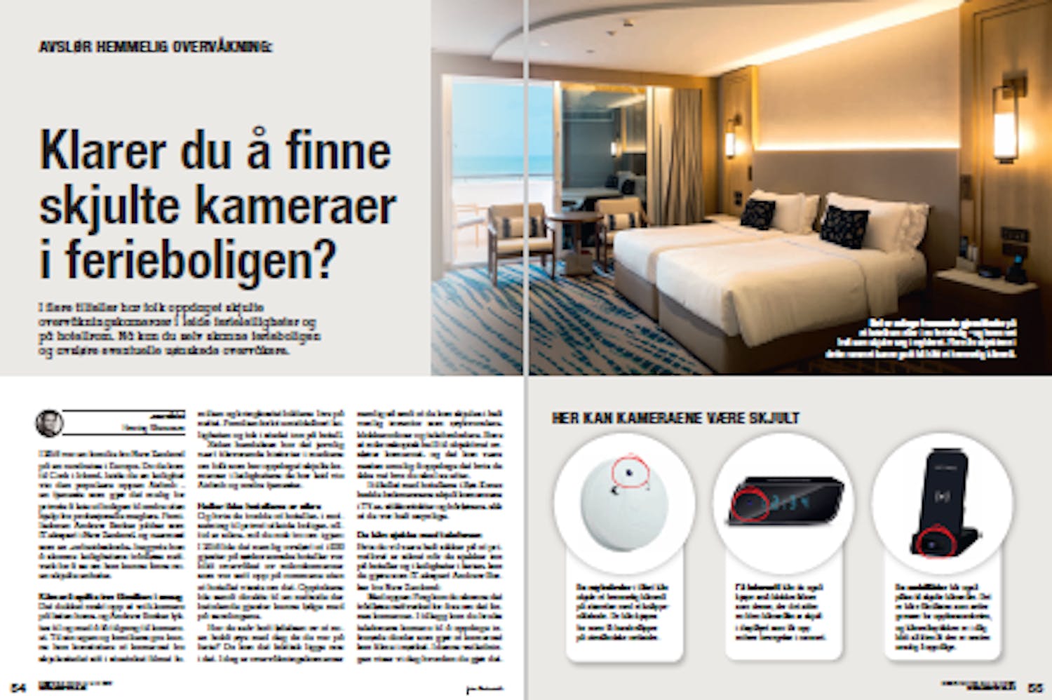 Og hvis du trodde at hoteller, i motsetning til privat utleide boliger, alltid er sikre, må du nok tro om igjen: I 2019 ble det nemlig avslørt at 1600 gjester på sørkoreanske hoteller var blitt overvåket av mikrokameraer som var satt opp på rommene uten at hotellet visste om det. Opptakene ble sendt direkte til en nettside der betalende gjester kunne følge med på sendingene. Har du selv hatt følelsen av at noen holdt øye med deg da du var på ferie?