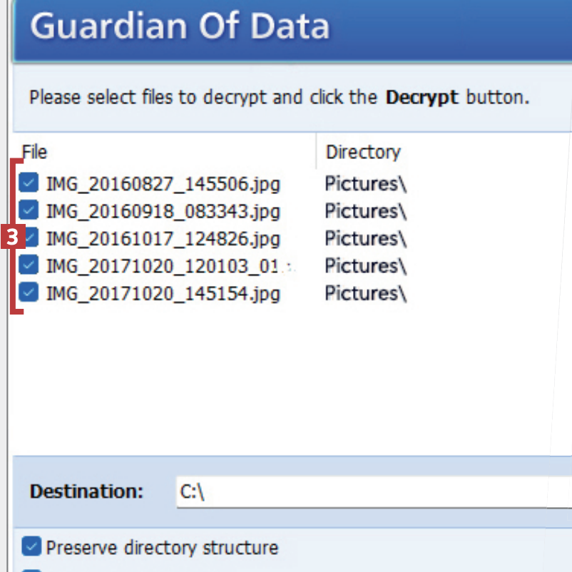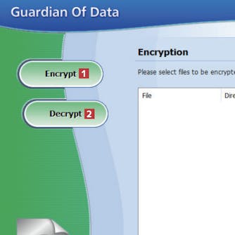 Last ned og installer programmet fra nettsiden vår. Når du starter det, klikker du på Encrypt 1 for å kryptere filer. Velg Decrypt 2 for å låse dem opp.