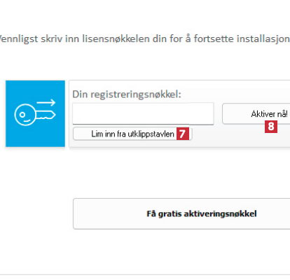 Tilbake i installasjonsvinduet klikker du på Lim inn fra utklippstavlen 7. Deretter klikker du på Aktiver nå! 8.