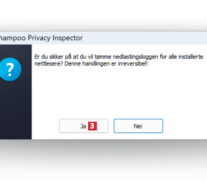 Programmet ber deg om å bekrefte at du ønsker å slette hele oversikten over filer du har lastet ned. Klikk på Ja 3.