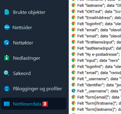 Deretter klikker du på Nettleserdata 3 for å slette data du har oppgitt i skjemaer. Klikk på Slett data i nederste høyre hjørne.