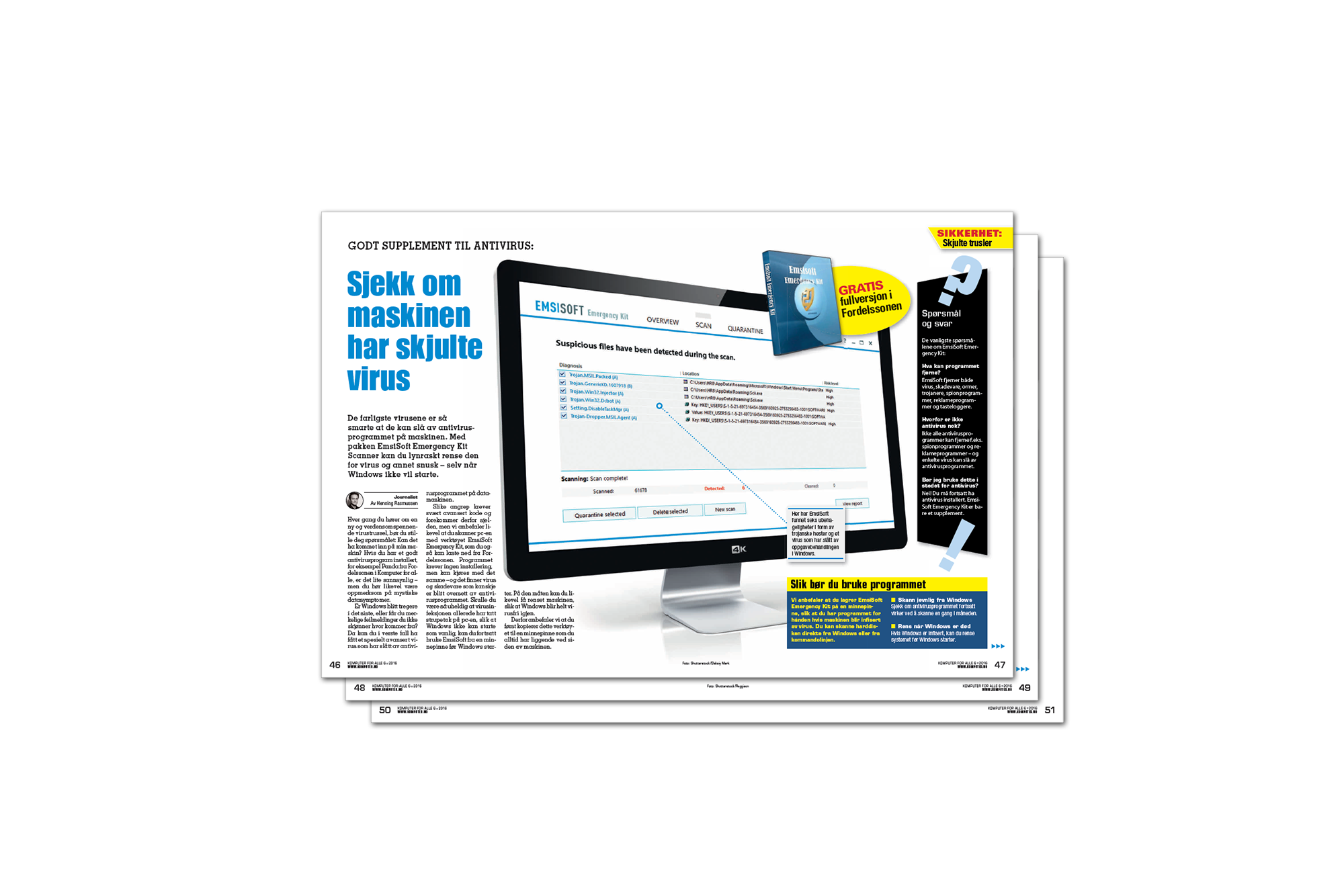 Med EmsiSoft Emergency Kit, som du finner i Fordelssonen til Komputer for alle, kan du gjennomsøke hele maskinen for skadelig kode og rense den før det er for sent. Du kan også bruke verktøyet fra Kommandolinjen før Windows starter, og dermed før viruset får muligheten til å starte seg selv. Det er den sikreste kuren mot virusangrep.