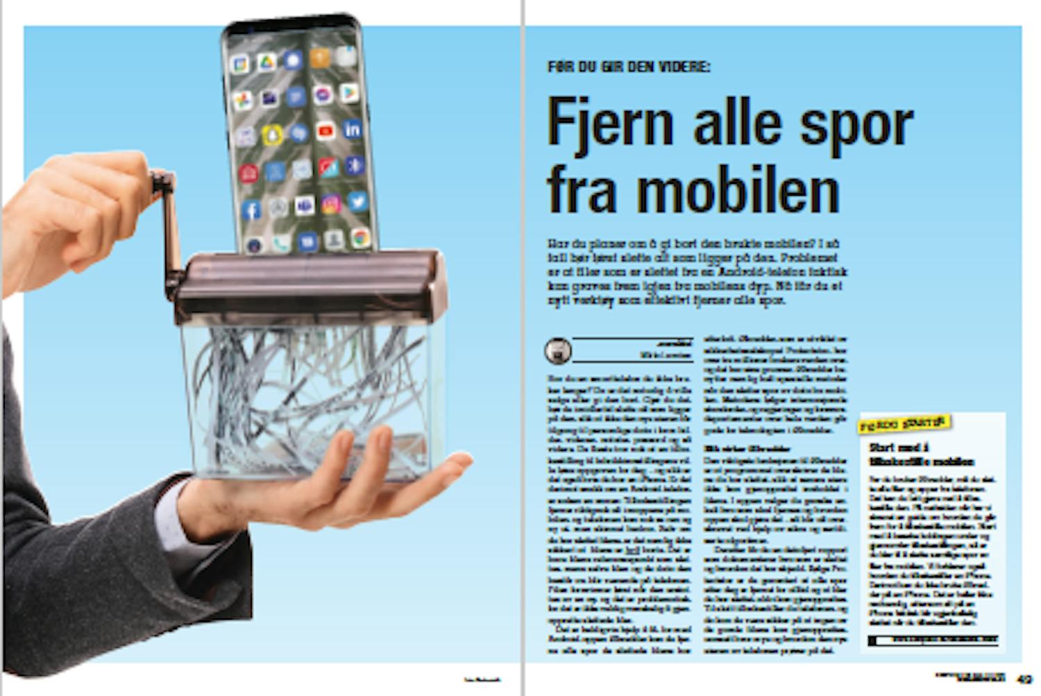 Har du en smarttelefon du ikke bruker lenger? Da er det naturlig å ville selge eller gi den bort. Gjør du det, bør du imidlertid slette alt som ligger på den, slik at ikke den nye eieren får tilgang til personlige data i form bilder, videoer, notater, passord og så videre. De fleste tror nok at en tilbakestilling til fabrikkinnstillingene ville løse oppgaven for deg – og slik er det da også hvis du har en iPhone. Er det derimot snakk om en Android-telefon, er saken en annen: Tilbakestillingen fjerner riktignok alt i mappene på mobilen, og telefonen kan nok se ren og ny ut, men skinnet bedrar. Selv om du har slettet filene, er det nemlig ikke sikkert at filene er helt borte. Det er bare filens referansepunkt som slettes, mens selve filen og de data den består av, blir værende på telefonen. Filen forsvinner først når den erstattes av en ny, og det er problematisk, for det er ikke veldig vanskelig å gjenopprette slettede filer.